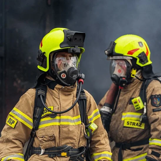 On-Helmet Display: Firefighters can simultaneously view critical visual and thermal data directly on a near-field display within the helmet visor.